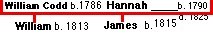 ![]() John Codd was b. 1823. There was also a William Codd b. 1842 - an entry found at a later date. The family of William Codd and Mary Watchorn is recorded as below, but ut has beeb determined tgat there were two other sons, John b. 1819 and William b. 1829. There was also the family of William and Hannnah, whose two sons were placed with an uncle who was on route to Canada after Hannah's death in 1825. By timing alone, this uncle was likely George Codd who arrived in Canada in 1832. James apparently died en route to Canada.